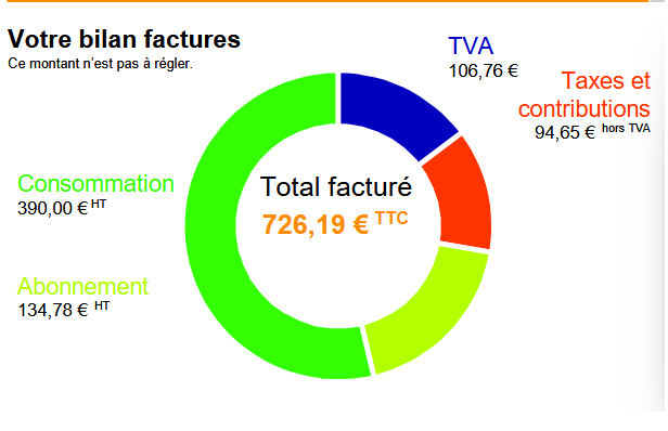 Notez que malgré une baisse des tarifs, 2600 KWh consommés cette année ainsi que l'abonement sont facturés 726€ alors que 2800 KWh étaient facturés "seulement" 588€ en 2022.
